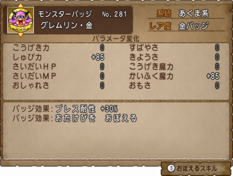 攻撃呪文耐性はバッジだけでは100%にはできませんけど、ブレス耐性はバッジだけで100%にできます。