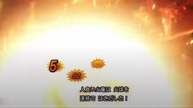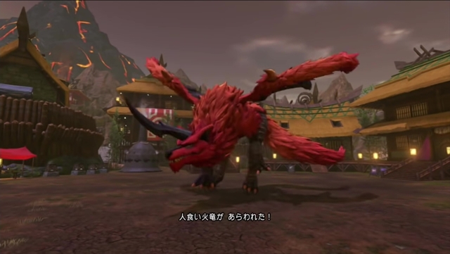 ホムラの里で人食い火竜と戦闘。勝利すると人食い火竜はヒノノギ火山に逃亡
