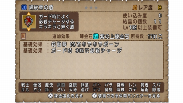 盾ガード率錬金した輝紋章の盾とセットで装備したいんですよね。