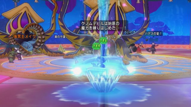 ゲノムデビルが魔力を練りはじめると、青か黄色いオーラみたいなのに包まれたあと9999×2の即死攻撃をくりだしてきます。