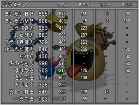 上の「かいふく&ちりょう」のおどるほうせきは、踊り子とか占い師とかの範囲バイキが使えるけど回復役になれない職のレベル上げ用の構成なんですけど、このあたりの職のレベル上げ終わっちゃったので、スキルちょっと変えてみました。