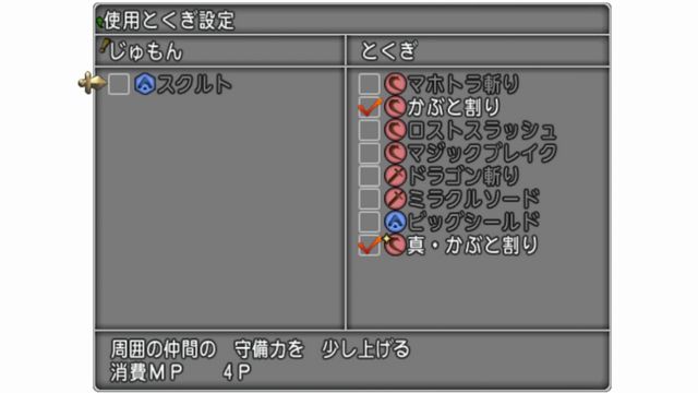 ちなみに、真・かぶと割りだけ使用可にすると、最初に真かぶと割り使ってくれるっぽいです。(絶対かどうかは分かりません。)