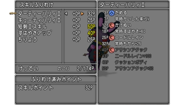 ニードルマンは状態異常成功率アップを2つ付けられますけど、今回は踊り子で行くので覚えさせていません。