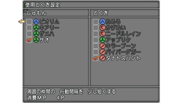 今回のスキル構成と使用とくぎはこんな感じ。