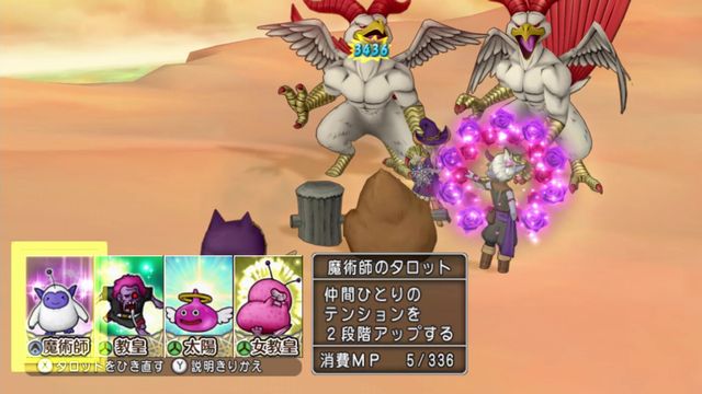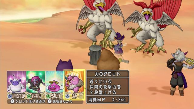 開幕に力のタロットがあれば使って、なければスパスタの風切に任せて回復や攻撃のカード使います。