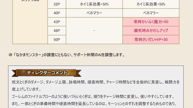 「なかまモンスター」の調整に伴い、サポート仲間のAIを調整します。