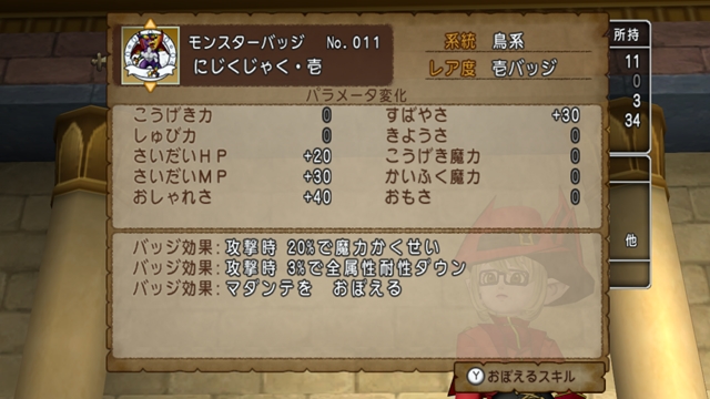 にじくじゃく・壱以外にも呪文覚える系のバッジ(現状バッジで覚えるスキルは全部呪文なので)はいくつかあって、呪文はいらないけどほかの効果は欲しいっていう感じのもあるんですよね。