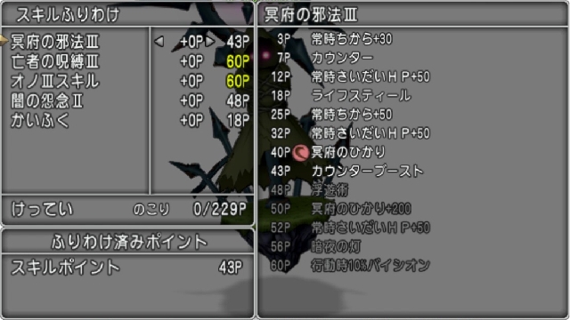 使用特技は呪縛・嘆きの霧・冥府のひかりの3つ。