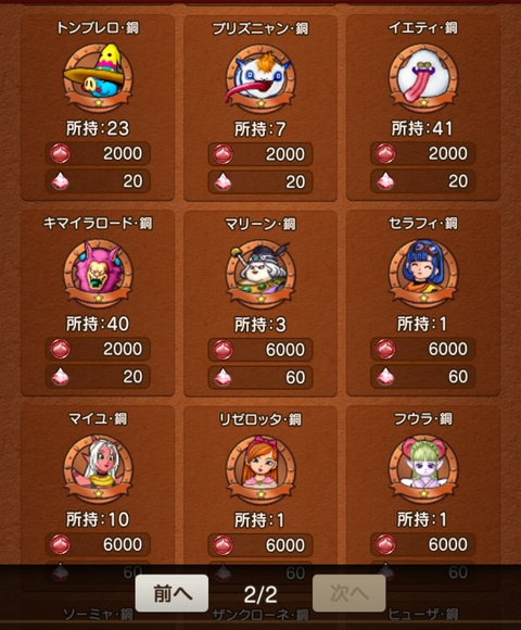 | 銅 | さいだいHP+20 かいふく魔力+40 おしゃれさ+100 | 開戦時50%メイクアップ ザオを覚える |