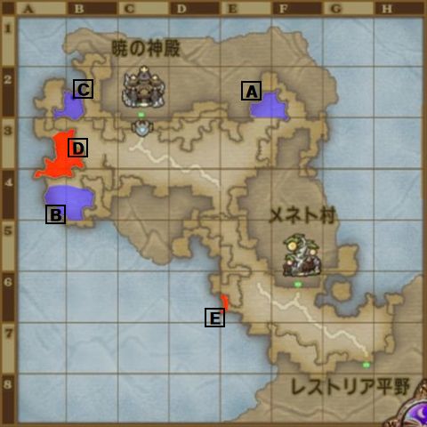 7.1の時点でノーライフロードが出現するのは上のマップのA~Eの場所になります。