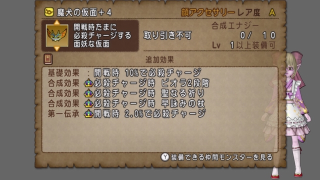 ご存じの通り伝承合成でつけられるのは3つある効果のうちのランダムひとつ。