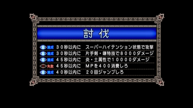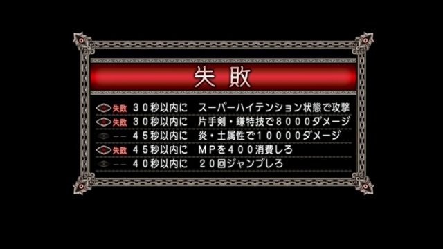 | ・ 30秒以内に 片手剣・鎌特技で8000ダメージ |