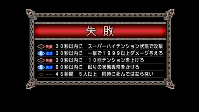 あと条件達成できるものは極力落とさないようにして、「倒すの早すぎて失敗」にならないようにていうのも大事。
