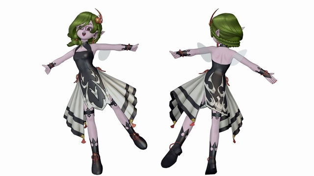 ニニエルザの魔族的(執行者ですが)でミステリアスな雰囲気を、衣装の配色とシルエットで引き立てるデザインになっていますね。
