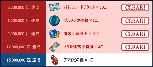さっき12,000,000匹に到達して4つ目の報酬が確定しましたよー。