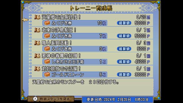 ちなみに今週の育成帳には対抗競技での活躍!(ゴールドストーン×5、EXP3万)があります。