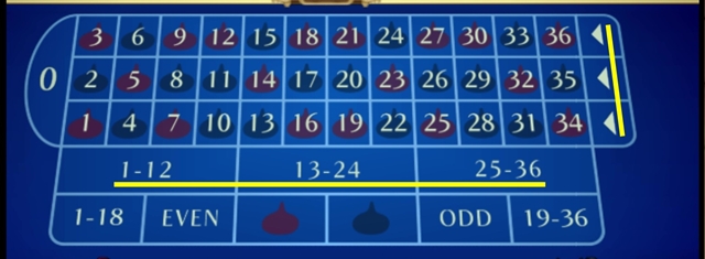 ひとつの数字とその両枠に掛けて見事的中すれば、36倍+18倍+18倍で72倍!