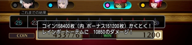 レインボートーテム(22倍)なのが残念ですけどそれでも100枚×72倍×22倍の158400枚が一瞬で稼げちゃうのは魅力。