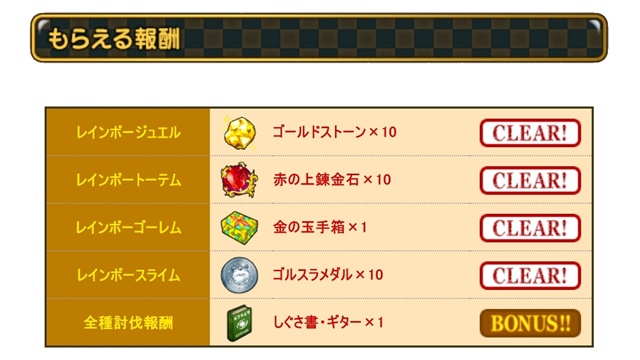 最後のレインボースライムも達成して報酬もすべて確定しました。