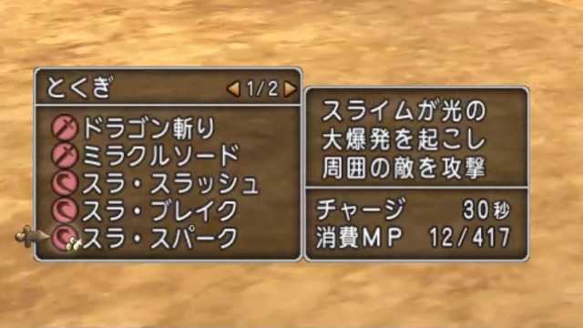 ドラゴン斬りとかミラクルソードが表示されてるのでスラ・シャイニングとスラ・ギガブレイクが押し出されちゃってます。