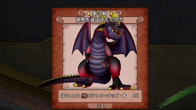 報酬は、「バッジ交換券・虹×3」との交換に必要なビクトリーチップ・紫×1です。