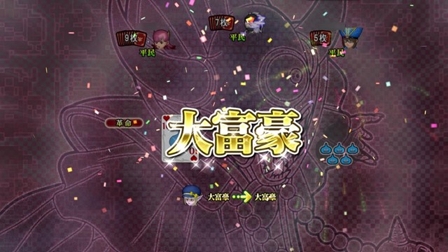 大富豪を維持していきたいとこですけど恒例の都落ちがあってコロっと大貧民転落しちゃいますので要注意です。