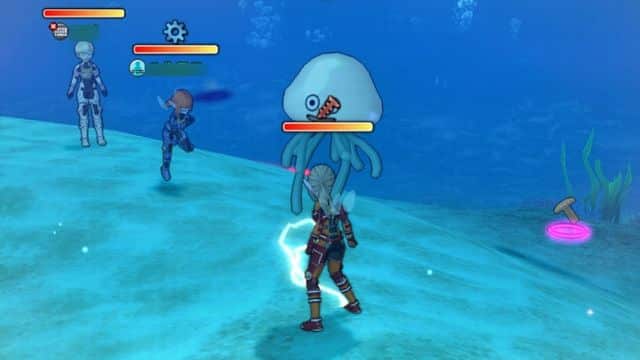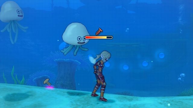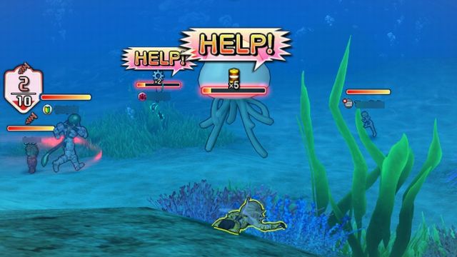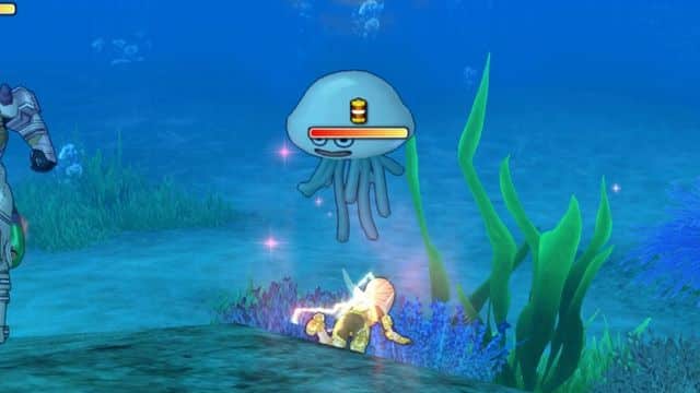サメも動けないとこに攻撃かぶせてきたりするんですけど、ガテリア号まで飛ばされるからそれ以上追撃受けないんですけど、しびれくらげはその場で動けなくなるから・・・。