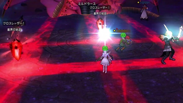 魔界の結晶はダークキングのものみたいに一定時間でレーザーを撃ってくるんですけど、直線以外に十字に撃ってきたりします。