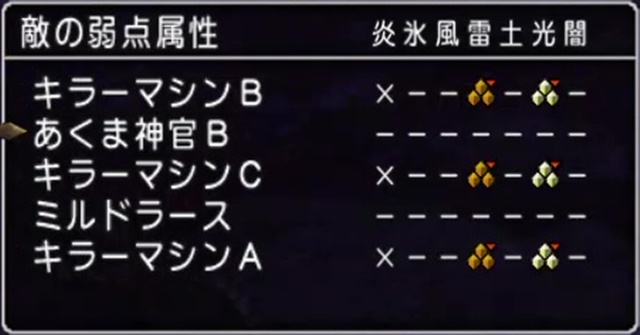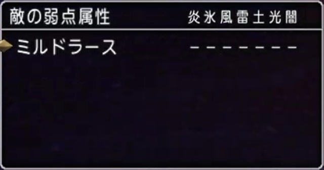 ミルドラースの弱点属性はこのようになっています。