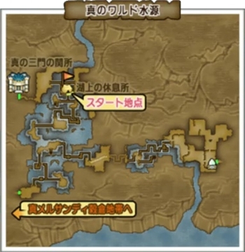 真のレンダーシア大陸の真のワルド水源の湖上の休息所から真のメルサンディ穀倉地帯を抜けて真のローヌ樹林帯というコースになります。
