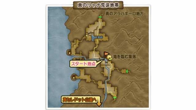 真のリャナ荒涼地帯「滝を臨む集落」から真のセレドット山道を抜けて真のリンジャハル海岸「リンジャの塔」までのコースになります。