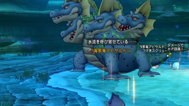 クリア後にキュララナビーチに現れるフカッキに話しかけると、海邪竜アビサルドンとのバトル!