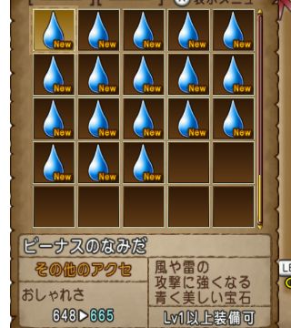今回の収穫は、56回戦闘中転生が9回出現して、ビーナスのなみだ17個ゲット出来ました!
