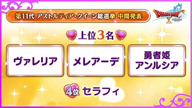 ここにきてヴァレリアが2位に来たのはびっくりでした。