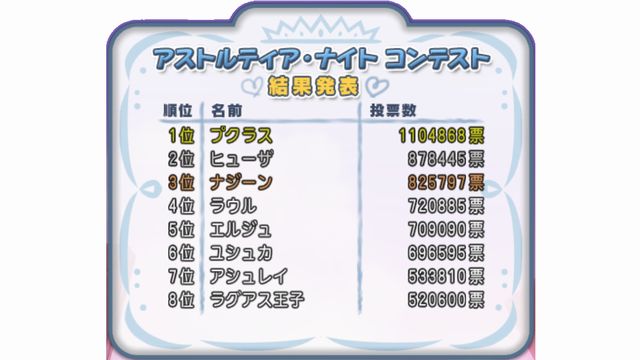 最新ストーリーのアシュレイが7位。。Ver.6勢弱いですね。