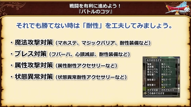 先日放送された超ドラゴンクエストXTV 番外編「新人さん いらっしゃい!」は、「バトルのコツ」として、基本的だけれど大事な要素の紹介がありましたね。