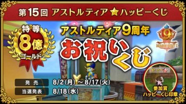 2日から発売されてる第15回アストルティア★ハッピーくじ アストルティア9周年お祝いくじですけど、さっそくグレンが売り切れに!午前中に見たときはまだ売ってましたけど、お昼過ぎ頃には売り切れになってました。 去年の8周年くじのときから20枚買...