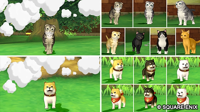 「へんげの杖・猫」は7種類の猫から「へんげの杖・犬」は6種類の犬から好きなのに変身できるほか、ランダム変身もあります。