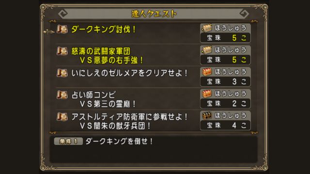 今週宝珠が5個もらえるのは、ダークキング討伐!と怒涛の武闘家軍団VS悪夢の右手強!ですね。