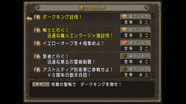 大魔王の代筆家と一緒にできるようなものはありませんけど、宝珠5つのダークキング討伐!も戦士と行く!迅速なエンラージャ強討伐!のどっちもすぐ終わりますね。