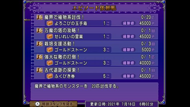 魔界で植物系討伐!がありますが、一応万魔の塔の三の災壇にきりかぶこぞうが出てくるので一緒にできるかな?