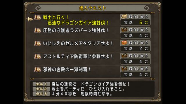 昨日、紫竜の煌玉が発表されたからってわけじゃないでしょうけど、戦士と行く!迅速なドラゴンガイア強討伐!があります。