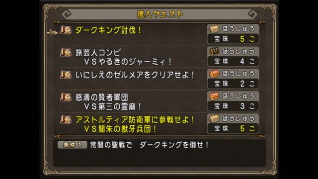 今週宝珠が5個なのはダークキング討伐!アストルティア防衛軍に参加せよ!VS闇朱の獣牙軍団!です。