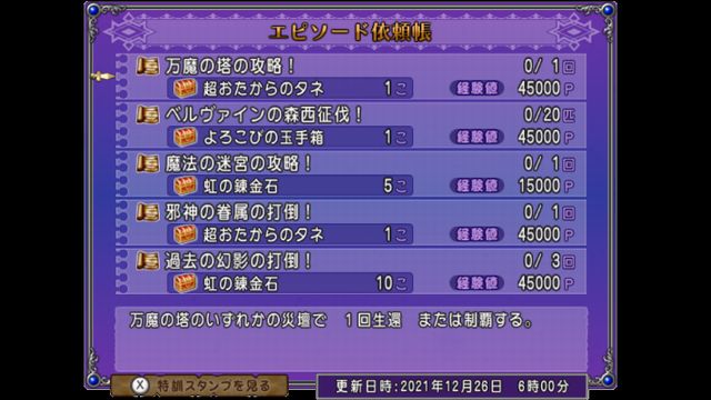 魔法の迷宮の攻略!と過去の幻影の打倒!で虹の錬金石15個手に入るので、優先的にやっておきたいですね。