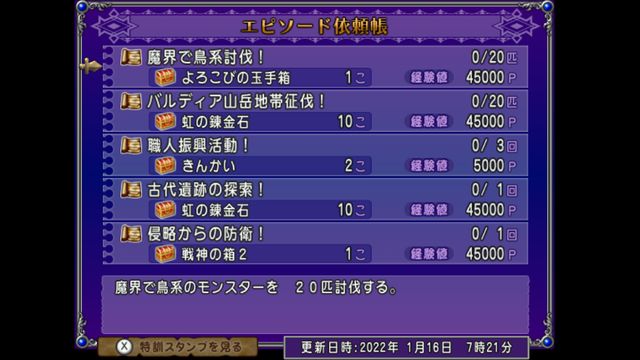 バルディア山岳地帯征伐!と古代遺跡の探索!のそれぞれに虹の錬金石10個があるので、合計20個虹の錬金石が手に入ります!