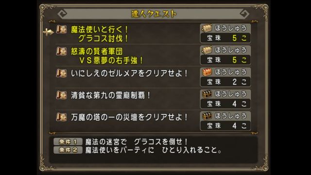 魔法使いと行く!グラコス討伐!と怒涛の賢者軍団VS悪夢の右手強!が、宝珠5個のお題になってます。
