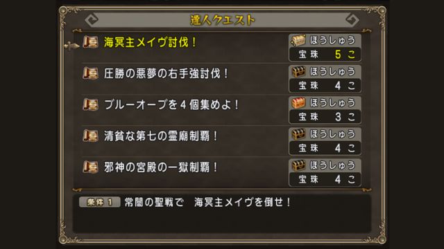 今週宝珠5個のものは、海冥主メイヴ討伐!だけです。