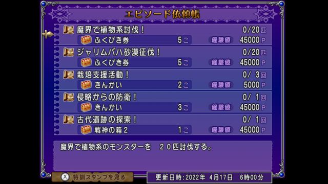 魔界で植物系討伐!がありますけどジャリムバハ砂漠に植物系は出ませんので、ジャリムバハ砂漠征伐!と一緒にはできません。