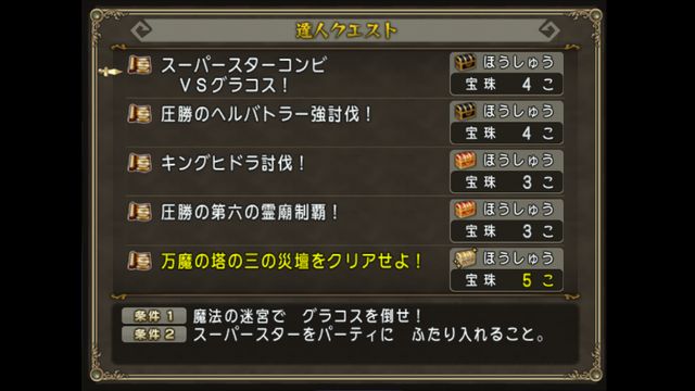 今週宝珠5個のクエストは、万魔の塔の三の災壇をクリアせよ!になります。