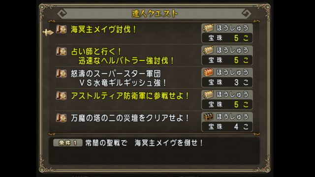 宝珠4個になりますけど大魔王の代筆家のほうに万魔の塔があるので、万魔の塔の二の災壇をクリアせよ!なら一度で済んじゃいますね。